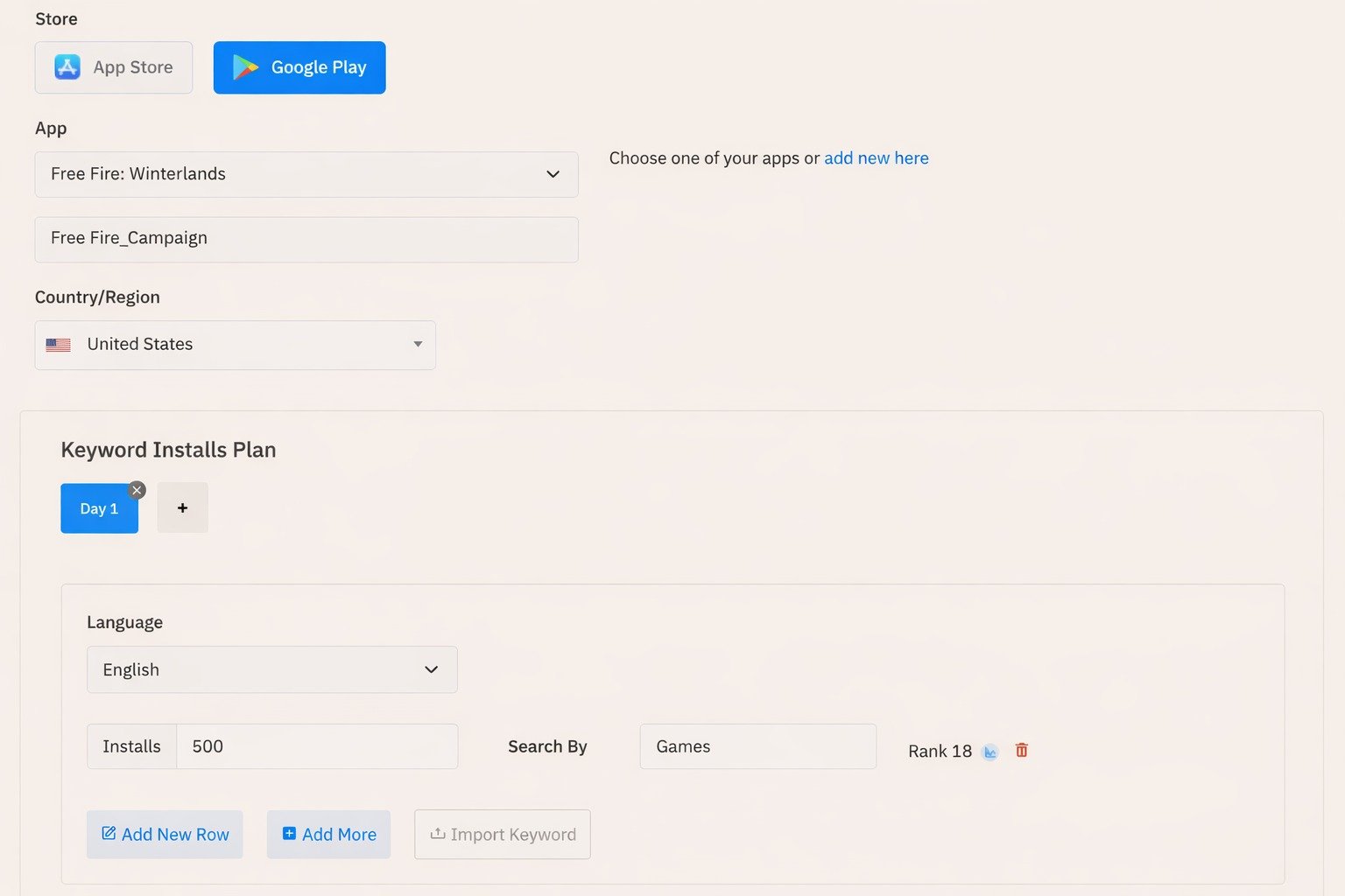 Google Play Keyword Installs